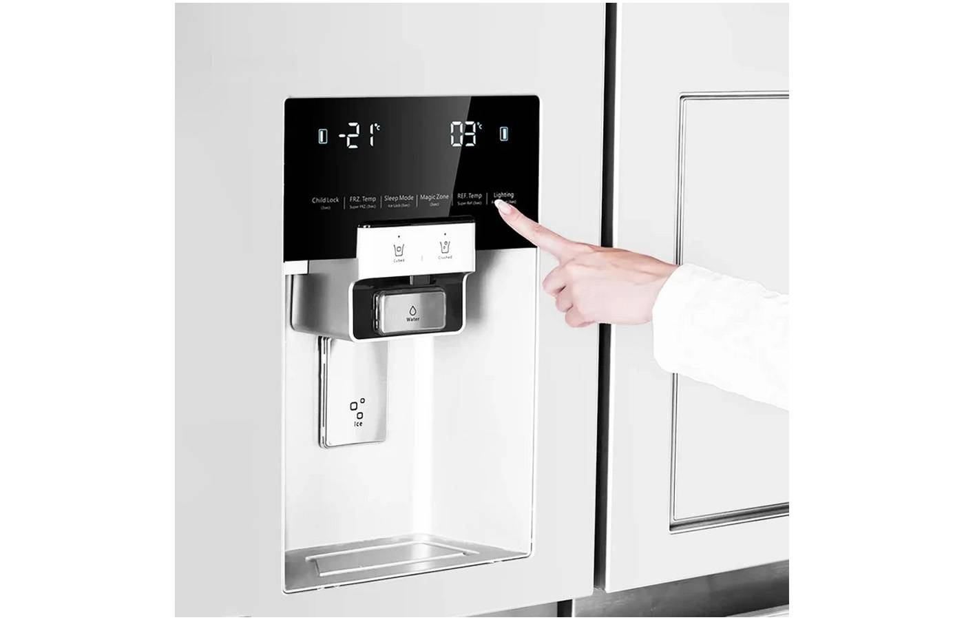 دوو SXi20-21W با رنگ سفید خود، حسی از پاکیزگی، آرامش و دلبازی را به فضای آشپزخانه میبخشد. طراحی صاف و خطوط مدرن، به همراه دستگیرههای مخفی، به ایجاد سطحی یکپارچه و مینیمال کمک شایانی کرده و زیبایی دستگاه را در عین سادگی، دوچندان میکند. این سبک طراحی به آن اجازه میدهد تا به راحتی با انواع دکوراسیونهای آشپزخانه، از کلاسیک تا مدرن، هماهنگ شود. پنل کنترل LED لمسی که روی درب تعبیه شده، علاوه بر دسترسی آسان و سریع به تنظیمات دما و سایر قابلیتهای هوشمند، جلوهای از تکنولوژی پیشرفته را به نمایش میگذارد و دارای قابلیت قفل صفحه نمایش برای جلوگیری از تغییرات ناخواسته است. یکی از ویژگیهای برجستهی طراحی کاربرپسند این مدل، درب بار خانگی یا همان هوم بار است. این درب کوچک امکان دسترسی سریع به نوشیدنیها و مواد غذایی پرمصرف را بدون نیاز به باز کردن کامل درب اصلی یخچال فراهم میکند که هم به صرفهجویی قابل توجهی در مصرف انرژی کمک میکند و هم راحتی بیشتری را برای اعضای خانواده به ارمغان میآورد.