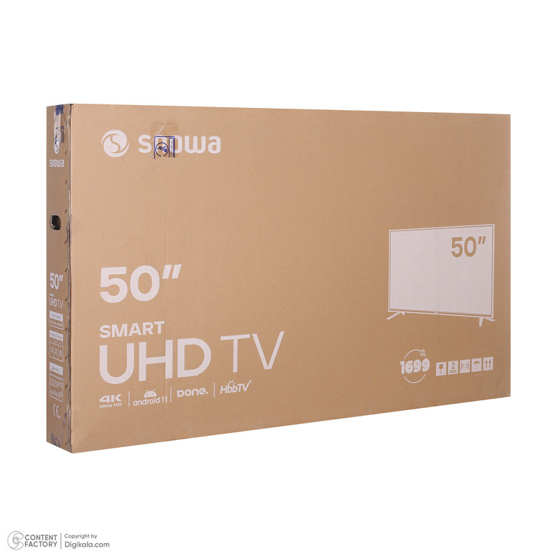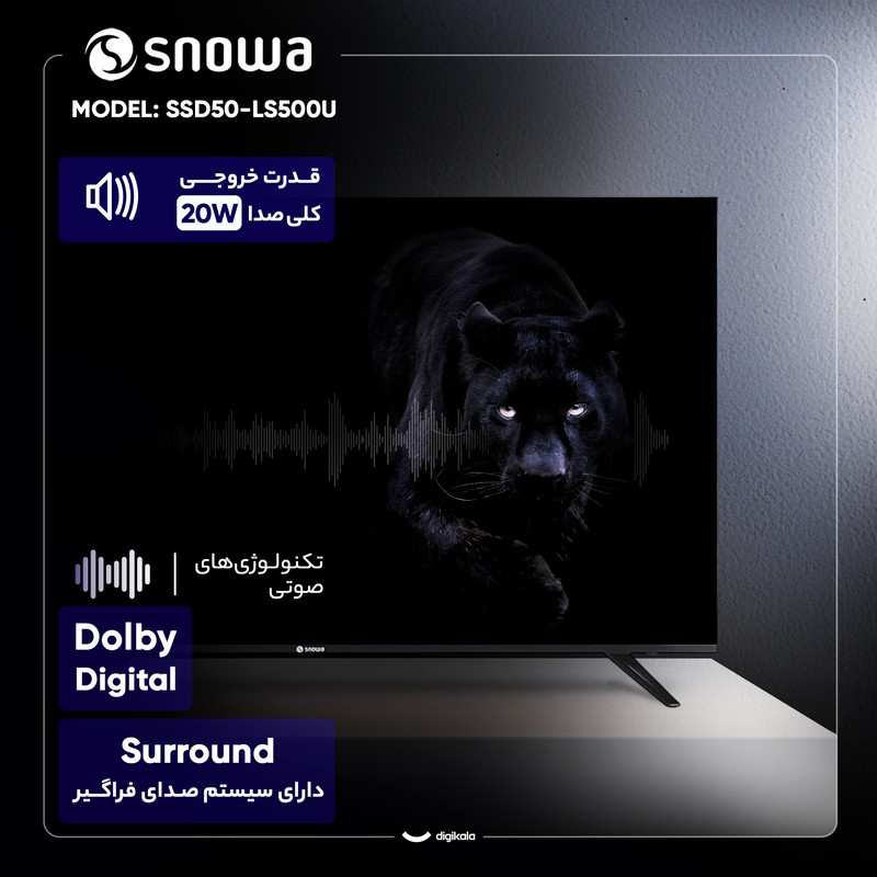 تلویزیون هوشمند ۵۰ اینچی اسنوا مدل SSD-50LS500U، انتخابی ایده‌آل از یک برند ایرانی برای تجربه‌ی تماشای 4K با امکانات هوشمند است. این دستگاه با طراحی تخت و پایه‌های دوشاخه، زیبایی و کارایی را به خانه‌ی شما می‌آورد. نمایشگر LED این تلویزیون با پنل VA و رزولوشن ۳۸۴۰ در ۲۱۶۰ پیکسل، تصاویری با کنتراست بالا و رنگ‌های مشکی عمیق ارائه می‌دهد. پشتیبانی از HDR10 و HLG هم به نمایش بهتر جزئیات در محتوای سازگار کمک می‌کند. نرخ به‌روزرسانی ۶۰ هرتزی آن برای تماشای فیلم و برنامه‌های تلویزیونی مناسب است و قابلیت ارتقای کیفیت تصویر هم کیفیت محتواهای قدیمی‌تر را بهبود می‌بخشد. سیستم صوتی ۲۰ واتی آن با پشتیبانی از Dolby Digital، صدایی فراگیر و سه‌بعدی را به ارمغان می‌آورد. این تلویزیون هوشمند با رابط کاربری اختصاصی "Done" و دستیار صوتی فارسی "دانا"، تجربه‌ای بومی‌سازی‌شده و کاربرپسند ارائه می‌دهد. پردازنده‌ی چهار هسته‌ای و ۸ گیگابایت حافظه داخلی، امکان اجرای برنامه‌ها و استفاده از قابلیت Screen Mirroring را فراهم می‌کند. سه درگاه HDMI، دو درگاه USB، پورت LAN، وای‌فای و بلوتوث، امکان اتصال به انواع دستگاه‌ها را می‌دهند. گیرنده دیجیتال داخلی DVB-T2 هم شما را از خرید دستگاه جداگانه بی‌نیاز می‌کند. اسنوا SSD-50LS500U با ترکیب تصویر 4K، صدای باکیفیت و پلتفرم هوشمند فارسی، انتخابی هوشمندانه برای لذت بردن از سرگرمی‌های روزمره است.