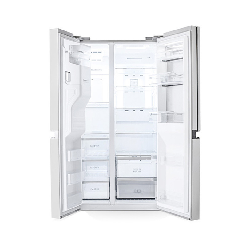 اولین چیزی که در مورد این یخچال خودنمایی میکند، طراحی مدرن و زیبای آن است. ابعاد این دستگاه ۱۸۱.۶ سانتیمتر ارتفاع، ۹۱.۶ سانتیمتر عرض و ۹۲ سانتیمتر عمق است که آن را برای آشپزخانههای بزرگ مناسب میسازد. عملکرد بیصدای این یخچال هم آن را به گزینهای ایدئال برای فضاهای باز تبدیل میکند، زیرا هیچ مزاحمتی برای ساکنین خانه ایجاد نمیکند. کیفیت ساخت یخچال و فریزر سایدبایساید دوو مدل ARSXi30-30W هم با استفاده از مواد مرغوب و طراحی بادوام، بسیار خوب به نظر میرسد. سیستم نرمبند دربها از بستهشدن ناگهانی آنها جلوگیری میکند و به افزایش طول عمر دستگاه کمک میکند. نورپردازی LED داخلی هم علاوه بر مصرف کمانرژی، تمام بخشهای یخچال را بهخوبی روشن میکند. با ظرفیت کلی ۷۷۱ لیتر، این یخچال فضای بسیار زیادی را برای نگهداری مواد غذایی فراهم میکند. بخش یخچال با ظرفیت ۴۹۴ لیتر، دارای ۵ طبقه قابلتنظیم، ۵ محفظه روی درب و دو کشوی بزرگ برای نگهداری میوه، سبزیها و گوشت است. این سازماندهی مناسب، دسترسی و مرتبسازی مواد غذایی را بسیار آسان میکند. بخش فریزر هم با ظرفیت ۲۷۷ لیتر، دارای ۳ طبقه اصلی و ۳ کشو است و یخساز اتوماتیک آن، همیشه یخ آماده در اختیار شما قرار میدهد.