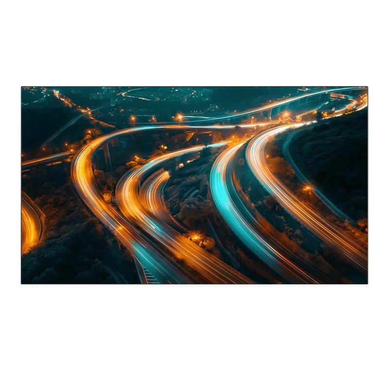 این تلویزیون با طراحی تخت و بدنهای باریک عرضه شده که به راحتی با سبکهای مختلف دکوراسیون هماهنگ میشود. صفحه نمایش بزرگ ۵۵ اینچی، تجربهای سینمایی به خانه میآورد و قاب باریک اطراف تصویر باعث میشود تمرکز بیننده تنها بر روی محتوای در حال پخش قرار گیرد. ابعاد دستگاه با پایه 1226x269x765 میلیمتر و بدون پایه 1226x89x709 میلیمتر است. وزن سبک و طراحی جمعوجور امکان نصب روی دیوار را فراهم میکند و جلوهای مدرنتر به فضای نشیمن میدهد. ابعاد این تلویزیون با پایه 1226x269x765 میلیمتر و بدون پایه 1226x89x709 میلیمتر است که برای سالنهای متوسط و بزرگ مناسب خواهد بود. طراحی باریک و وزن سبک نصب آن را روی دیوار ساده میکند. این ویژگی به کاربران آزادی بیشتری در انتخاب محل نصب و چیدمان دکوراسیون میدهد.