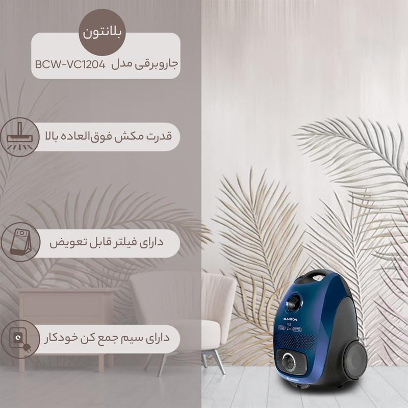 با توان مصرفی 2000 وات، جاروبرقی بلانتون قدرتمند و با عملکرد بهینهای عمل میکند. فیلتر HEPA به شما کمک میکند تا هوای پاکی را در خانه خود داشته باشید و ذرات آلرژنی را حذف کنید. این جاروبرقی با میزان صدای کمتر از 60 دسیبل آرام و بیصدا عمل میکند، بنابراین شما را در هنگام تمیزکاری اذیت نمیکند. با مکش قدرتمند به شدت آلودگی را از سطوح مختلف جمع میکند و با شعاع عملکرد 10 متر، به شما اجازه میدهد به راحتی در کل اتاق تمیزکاری کنید. همچنین، با کیسه با ظرفیت 4 لیتر و قابلیت شستشو، شما نیاز به تعویض مکرر کیسه را ندارید. از دیگر قابلیتهای جذاب این جاروبرقی میتوان به سیم جمعکن خودکار اشاره کرد که نگهداری سیم برق را آسان میکند. با این توضیحات، امیدوارم که از نقد و بررسی جاروبرقی بلانتون مدل BCW-VC1204 لذت برده و این محصول را به عنوان یک گزینه عالی برای نیازهای تمیزی خود در نظر بگیرید.