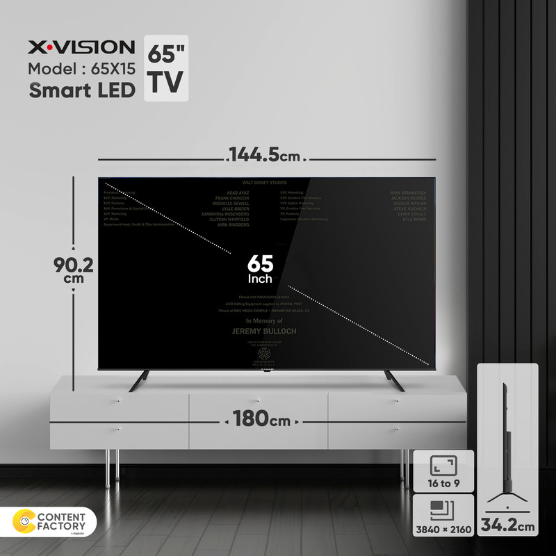 تلویزیون ال ای دی هوشمند ایکس ویژن مدل 65X15 سایز 65 اینچ یکی از بهترین محصولات برند ایکس ویژن است که ویژگیهای متعددی را در اختیار کاربران قرار میدهد. این محصول به پردازشگر A53x4 و پردازشگر گرافیکی G52MC1 مجهز است و فیلم و سریالها را با کیفیت بالا به تصویر میکشد. از مهمترین ویژگیهای این محصول میتوان به اندازه 65 اینچ، بلندگوهای 12 ولت، رابط هوشمند اندروید و زاویه دید وسیع آن اشاره کرد. تلوزیونی که معمولا در خانههای بزرگ مورد استفاده قرار میگیرد و با نمایش تصاویر باکیفیت، لحظات خوشی را برای اعضای خانواده رقم میزند. تلویزیون مذکور به اینترنت متصل میشود و به شما اجازه میدهد تا نرمافزارهای اندرویدی را نصب کرده و آنها را مورد استفاده قرار دهید. این تلویزیون با طراحی تخت خود، در صورتی که بدون پایه از آن استفاده شود، فضایی برابر با 1445x837x98 میلیمتر را اشغال میکند. این ابعاد هنگام استفاده از پایه، به 1445x342x902 میلیمتر میرسد.