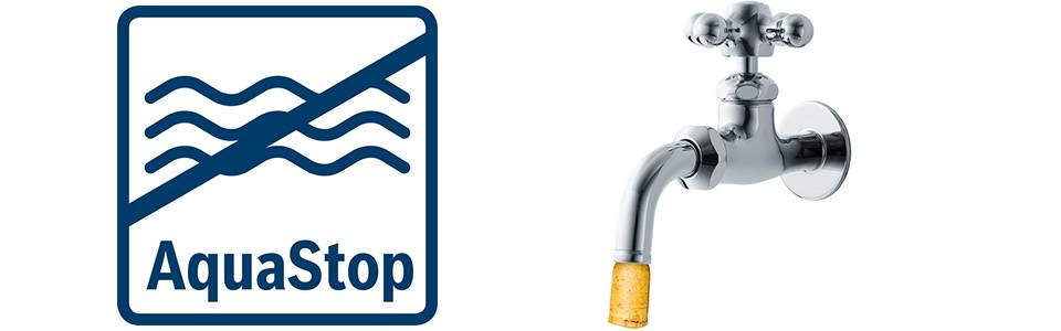 بوش با توجه به احتمال هدر رفتن آب در زمان استفاده از ماشین لباسشویی و برای جلوگیری از آن در این دستگاه از سیستم قطع آب AquaStop بهره برده است. این سیستم شامل یک شلنگ دو جداره به صورت یک شلنگ در داخل یک شلنگ دیگر بوده که اگر شلنگ داخلی نشتی پیدا کرد، شلنگ بیرونی بتواند آب را در داخل خود نگاه دارد. در داخل این شلنگ یک اسفنج نیز قرار دارد که تمامی آب را در خود جذب کرده و در چنین موقعیتی به صورت مکانیکی امکان نشت آب را از بین میبرد.