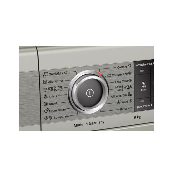 لباسشویی بوش مدل 28MX0 با ظرفیت 9 کیلوگرم، ساخت کمپانی بوش از کشور آلمان میباشد. که با قدرت موتور بالا و توانایی چرخش 1400 دور در دقیقه لباسها را کاملا آبگیری و تقریبا خشک می کند، نوع موتور دستگاه از نوع BLDC می باشد که بسیار کم صدا است و طول عمر بالاتری نسبت به سایر موتورها دارد. پنل ماشین لباسشویی 9 کیلویی 28MX0 دارای نمایشگر لمسی با ولوم چرخشی برای تنظیم برنامه های شستشو میباشد. با استفاده از پنل لمسی میتوان دمای آب، VarioPerfect ،speedPerfect و عملکرد شروع با تاخیر از 1 تا 24 ساعت را تنظیم نمود. برنامه های شستشو نیز شامل شستشوی ضد آلرژی، شستشو سریع ، لباس های جین، لباس های پشمی و لباس های نخی و … میباشد.
