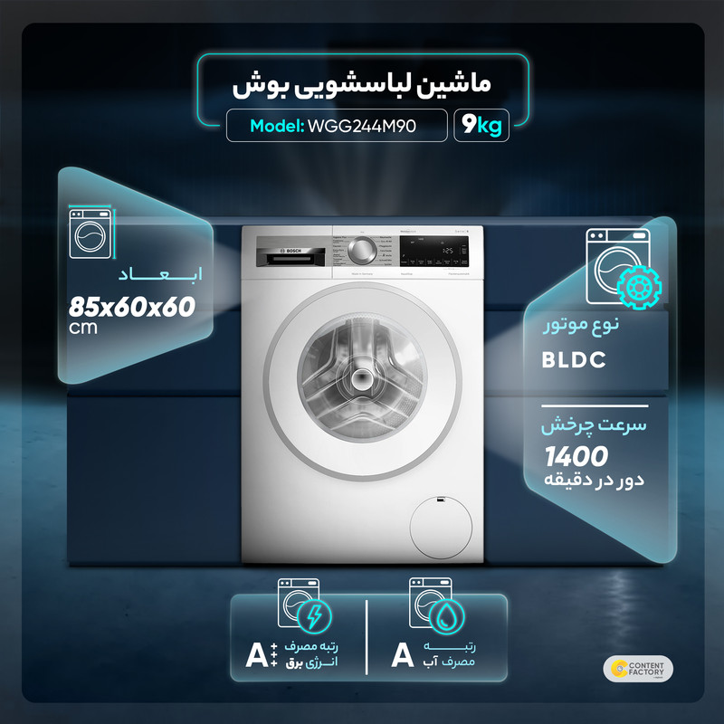 ماشین لباسشویی بوش مدل WGG244M90 ظرفیت 9 کیلوگرم