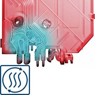 مبدل حرارتی به کار رفته در این دستگاه باعث میشود تا بتوان ظروف شیشهای باارزش را با خیالی راحت از سالم ماندن آنها شست. در واقع این دستگاه آب مورد استفاده برای آبکشی از را قبل در تانک خود گرم میکند تا از شوکهای دمایی و خراب شدن ظروف شیشهای جلوگیری شود.