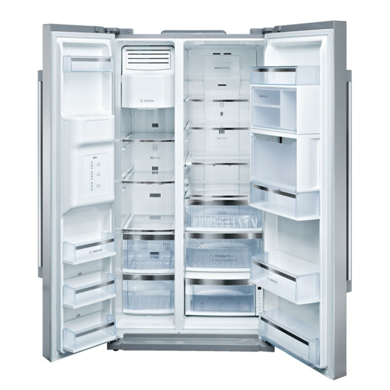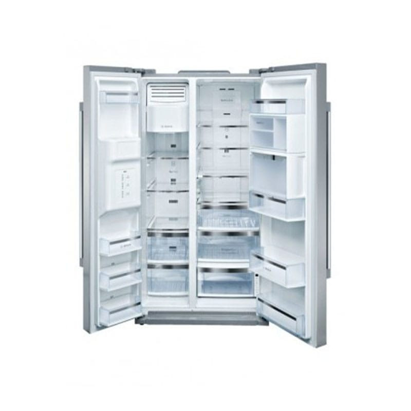 یخچال ساید بای ساید بوش مدل KAD80A104 با ظرفیت 32 فوت در سری 6 و به رنگ سفید در بازار شناخته می شود که در حقیقت بالاترین ظرفیت را دارا می باشد و برای یک خانواده پرجمعیت کاملا مناسب است و با توجه به ظرفیت و کیفیت آن قیمت یخچال ساید بای ساید بوش در مقایسه با دیگر برندها بسیار مناسب است. لازم به ذکر است که بدانید ظرفیت این یخچال معادل 438 لیتر و فریزر آن 230 لیتر می باشد اما به شما پیشنهاد می کنیم برای مقایسه دقیق تر بزرگ و کوچک بودن مدل ها به جای فوت به مقایسه لیتر آن ها توجه کنید چراکه معیار ظرفیت یخچال و فریزرها به لیتر می باشد و در دفترچه و کاتولوگ همه آنها نیز ظرفیت آنها بر اساس لیتر تعریف شده است و فوت نمی تواند ظرفیت دقیق را در اختیار شما بگذارد اما متاسفانه ظرفیت در مردم در ایران ظرفیت یخچال را بر اساس فوت می شناسند به همین دلیل نیز فروشندگان عددی را به صورت سلیقه ای به عنوان فوت به مشتری اعلام می کنند به همین خاطر بسیاری از مواقع یک مدل را با ظرفیت های مختلف می شنویم پس اگر می خواهید ظرفیت واقعی یخچال ساید بای ساید بوش را بدانید و یا آن را با مدل ها و برندهای دیگر مقایسه کنید برای این کار به ظرفیت آن بر اساس لیتر توجه نمایید، این یخچال ساخت کشور کره جنوبی است که با نظارت مستقیم مهندسین در کشور کره مونتاژ می شود. عرض 93 سانتی متر، عمق 85.6 سانتی مترو ارتفاع 181 سانتی متر، ابعاد و فضایی مناسبی را برای شما مهیا ساخته است.پیش از آنکه به جزییات و قیمت یخچال ساید بای ساید بوش مدل KAD80A104 بپردازیم لازم است به مهم ترین خصوصیات آن که داشتن مینی بار، آبریز و یخ ساز اتوماتیک است اشاره کنیم. مینی بار که درب کوچکی بر روی یخچال ساید بای ساید است دسترسی شما را به انواع مواد غذایی و نوشیدنی هایی که در طول روز نیاز بیشتری به آن ها داریم را آسان می کند و دیگر لازم نیست برای برداشتن نوشیدنی که در روز استفاده مداوم تری از آن داریم هر بار درب یخچال را باز کنیم. وجود آبریز و یخ ساز اتوماتیک نیز در یخچال ساید بای ساید بوش مدل KAD80A104 این امکان را به شما می دهد تا هر زمانی که شما بخواهید به آب خنک و یخ دسترسی داشته باشد البته لازم به ذکر که پنل این دستگاه به صورت کاملا لمسی است و دارای چشم الکترونیکی بوده